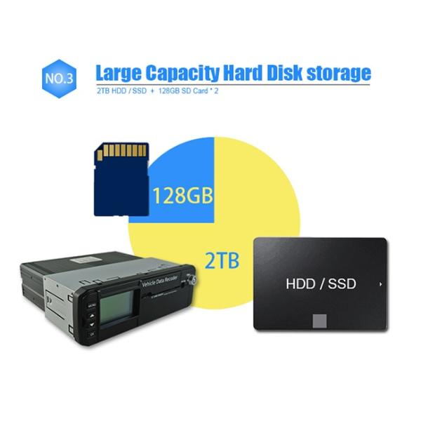 Storage | 2.5’’ HDD+ SD Card,each max 2TB HDD + 128GB SD Card mirror recording to protect data from loss |